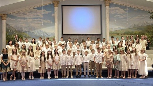 From ages 5-12, children have the opportunity to participate in choir. We focus on teaching songs of praise to God and teach children to use their voices for His glory. Our desire is that children of all ages would unite and join the angels in heaven worshipping our God. Most of our songs are a Ukrainian and English language mix. Our choir serves on Sundays 3-4 times a year with practices every week during the school year. Occasionally, we travel out of town to serve other churches.